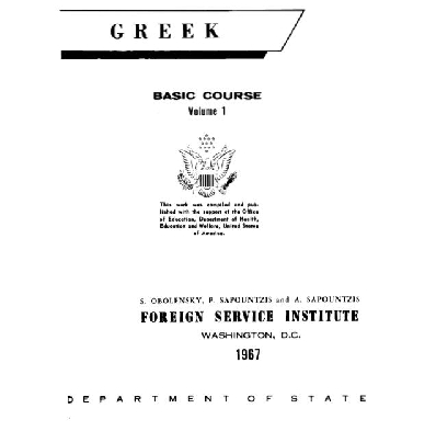 THIS IS THE FSI GREEK LANGUAGE BASIC COURSE VOLUME 1: THIS COURSE INCLUDES THE  STUDENT TEXT MANUAL AND MP3 AUDIO FILES. THERE ARE 25 UNIT LEARNING SECTIONS + 5 REVIEW SECTIONS IN ALL WITH MP3 AUDIO INSTRUCTION THAT GOES ALONG WITH THE STUDENT TEXT MANUAL.
